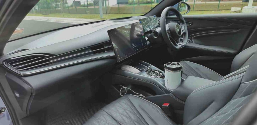 Acceleration is quick, so you get a sporty feel when driving, and being electric, the whole experience feels smooth and silent. The interior also has premium touches—modern design, a large screen, and a comfortable cabin make the driving experience more enjoyable.