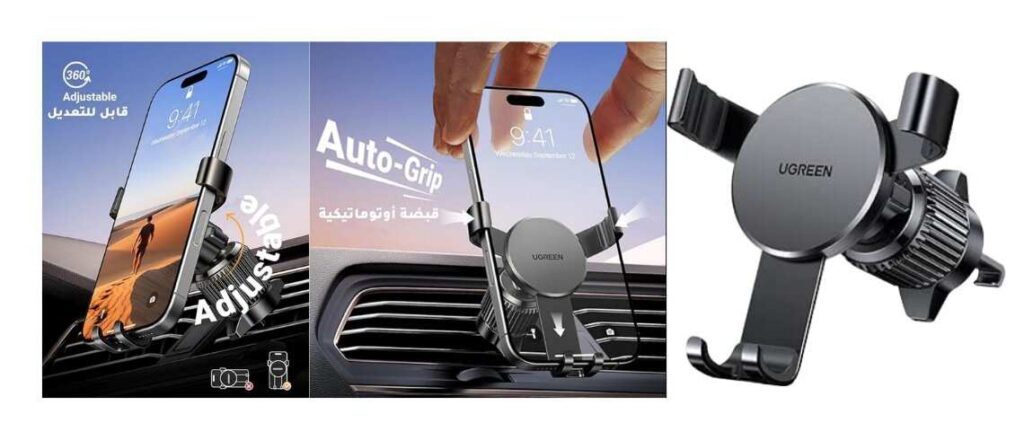 Top 5 Car Phone Holders in UAE 2026 This Car Phone Holder is ranked number three in this article because the UGREEN Gravity Car Mount is a smart & stable phone holder that you can use on your dashboard or windshield. The gravity mechanism automatically tightens the phone—it keeps it secure in daily city driving. The phone doesn’t wobble even on rough roads or speed breakers, and adjusting the angle makes it easy to view navigation or calls.